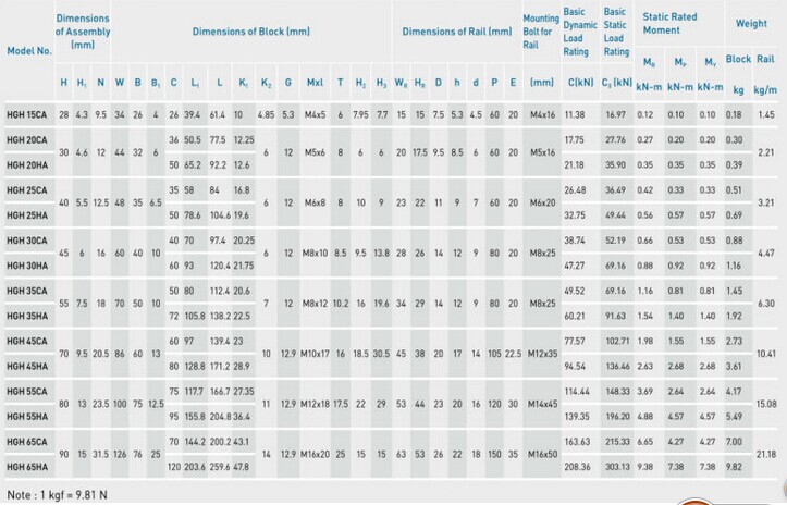 Because of precision dimensional control, the dimensional tolerance of HG series can be kept in a reasonable range, which means that any blocks and any rails in a specific series can be used together while maintaining dimensional tolerance.