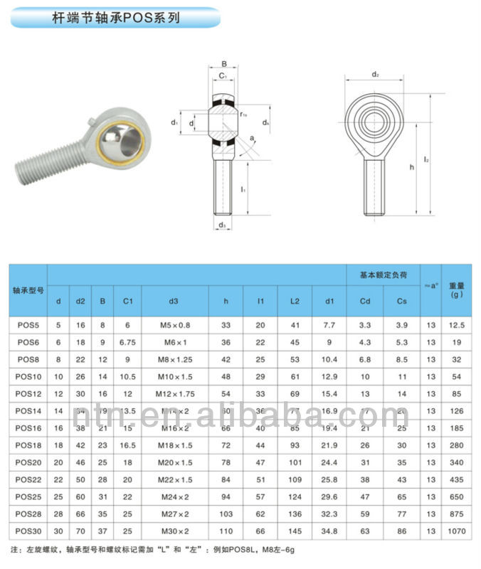 1.Right hand threads rod end bearing.